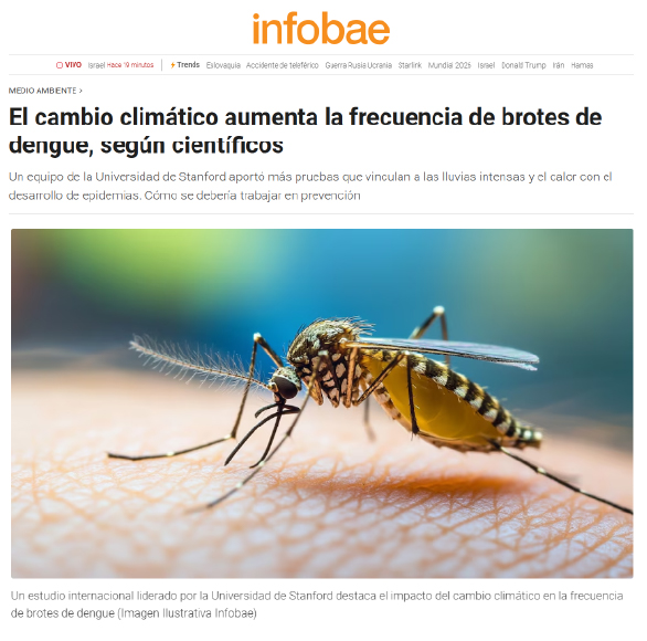 La nota publicada en Infobae aborda cómo el cambio climático impulsa los brotes de dengue.