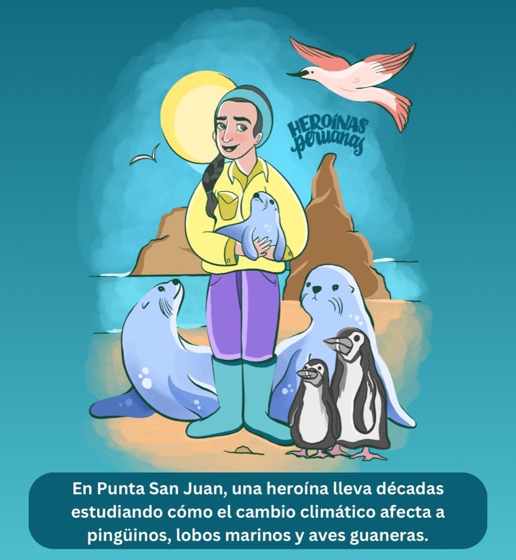 En el caso de la Dra. Cárdenas, su trayectoria científica está estrechamente vinculada al estudio y conservación de la biodiversidad marina. Desde hace más de dos décadas participa en el monitoreo de poblaciones de pingüinos de Humboldt, lobos marinos y aves guaneras en Punta San Juan, un sitio clave para la investigación y protección de especies marinas en el Perú.