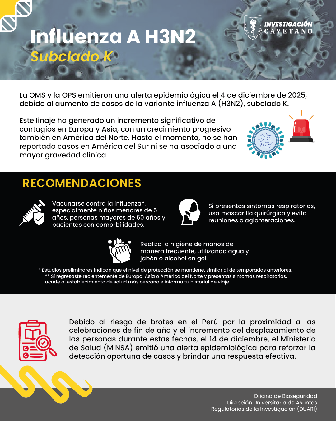 La Organización Mundial de la Salud (OMS) y la Organización Panamericana de la Salud (OPS) emitieron una alerta epidemiológica ante el incremento de casos de Influenza A H3N2, subclado K, en diversas regiones del mundo.