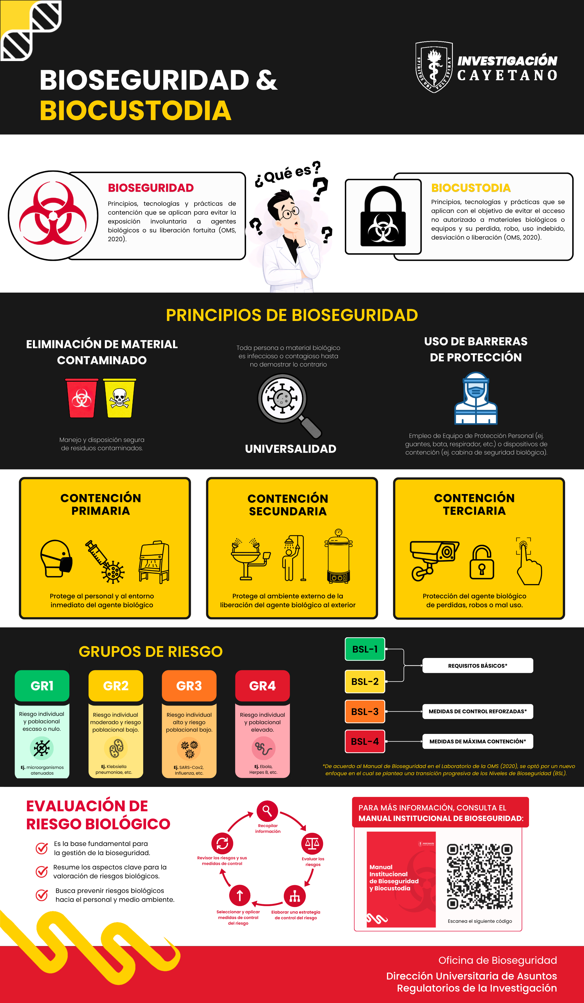 En ese contexto, la Oficina de Bioseguridad de la Dirección Universitaria de Asuntos Regulatorios de la Investigación (DUARI), a través de la presente infografía, invita a la comunidad herediana a fortalecer y adoptar buenas prácticas en bioseguridad: